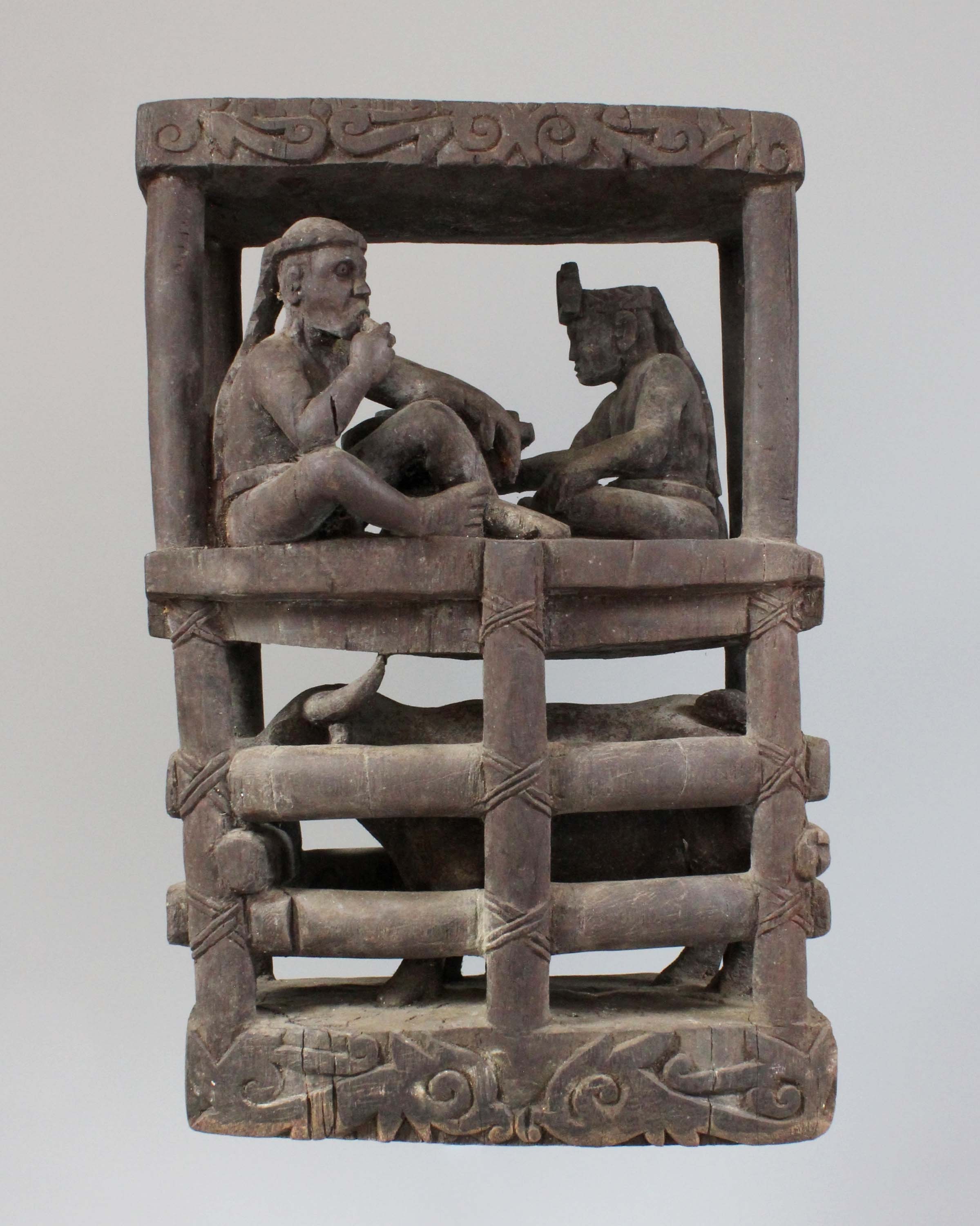 Altar piece showing ritual preparations for a buffalo sacrifice.