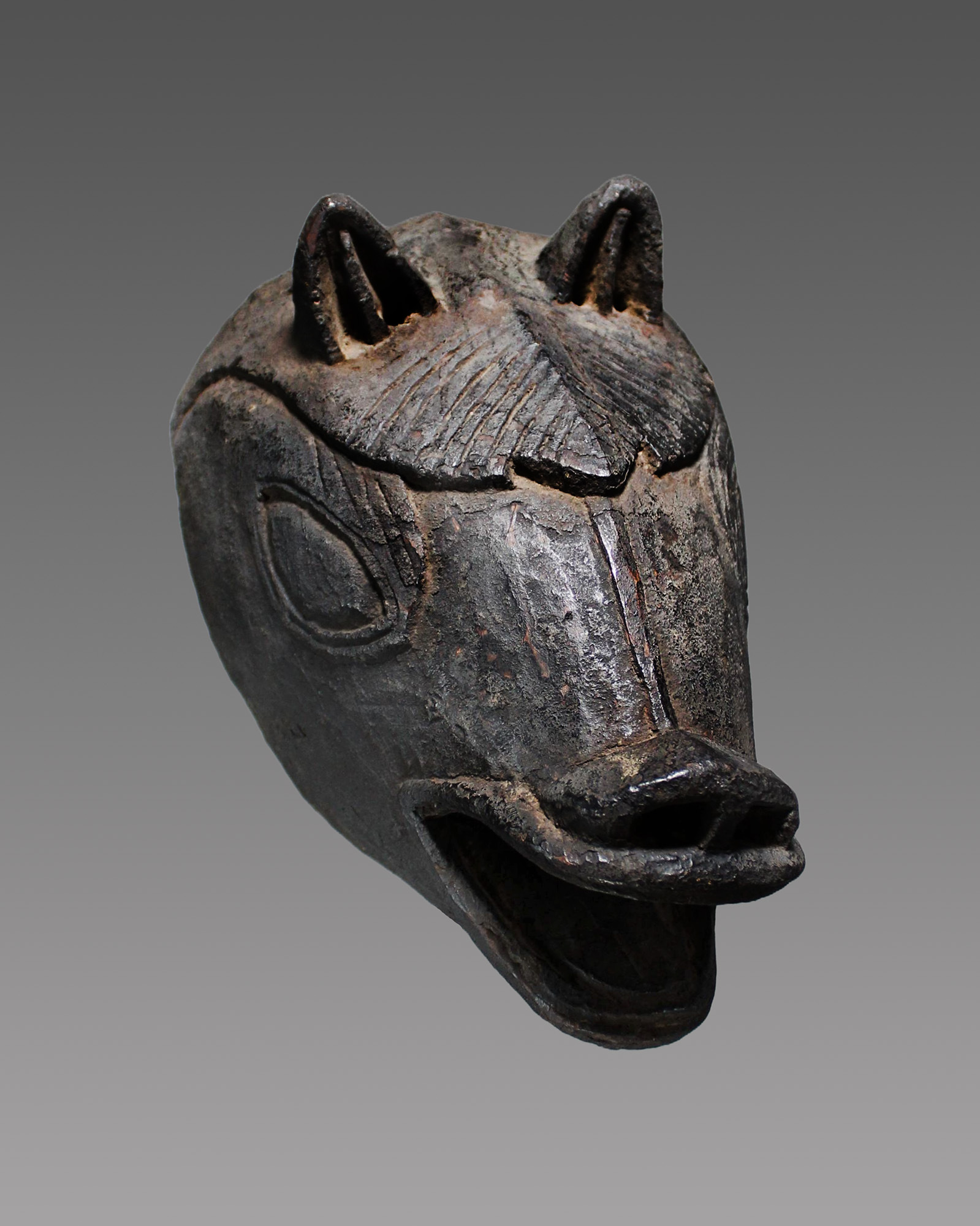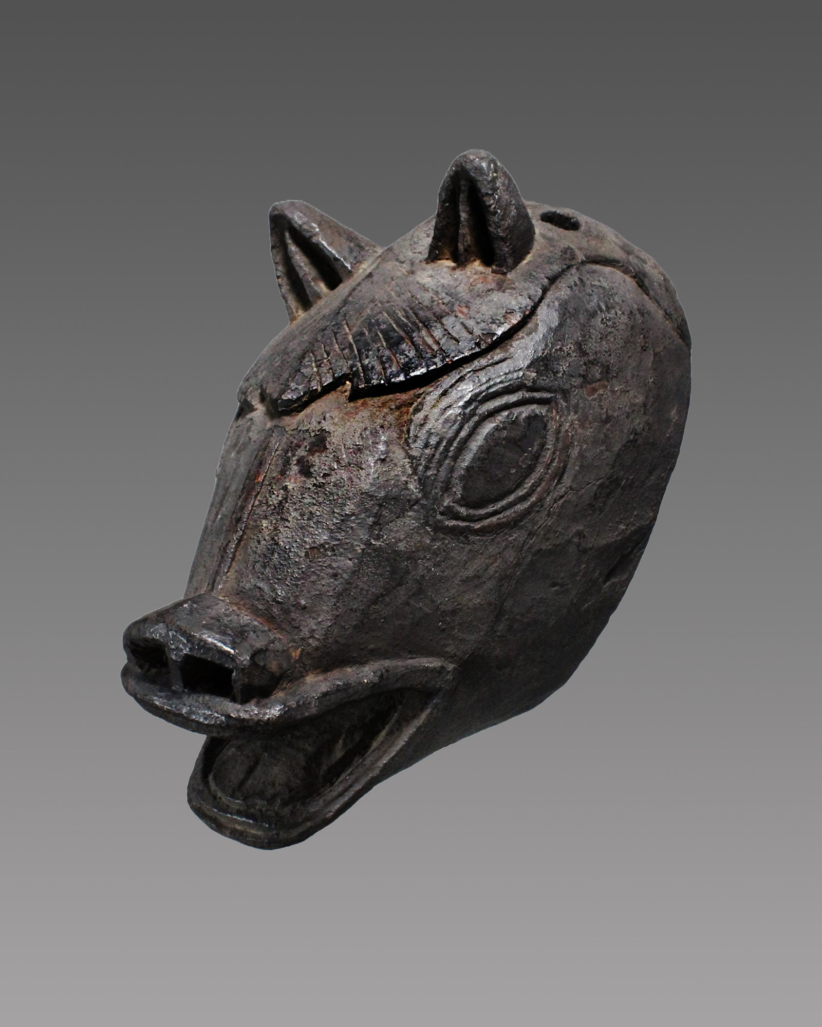 Mask carved in deep relief, in the form of a Himalayan serow, an animal resembling a goat and an antelope.