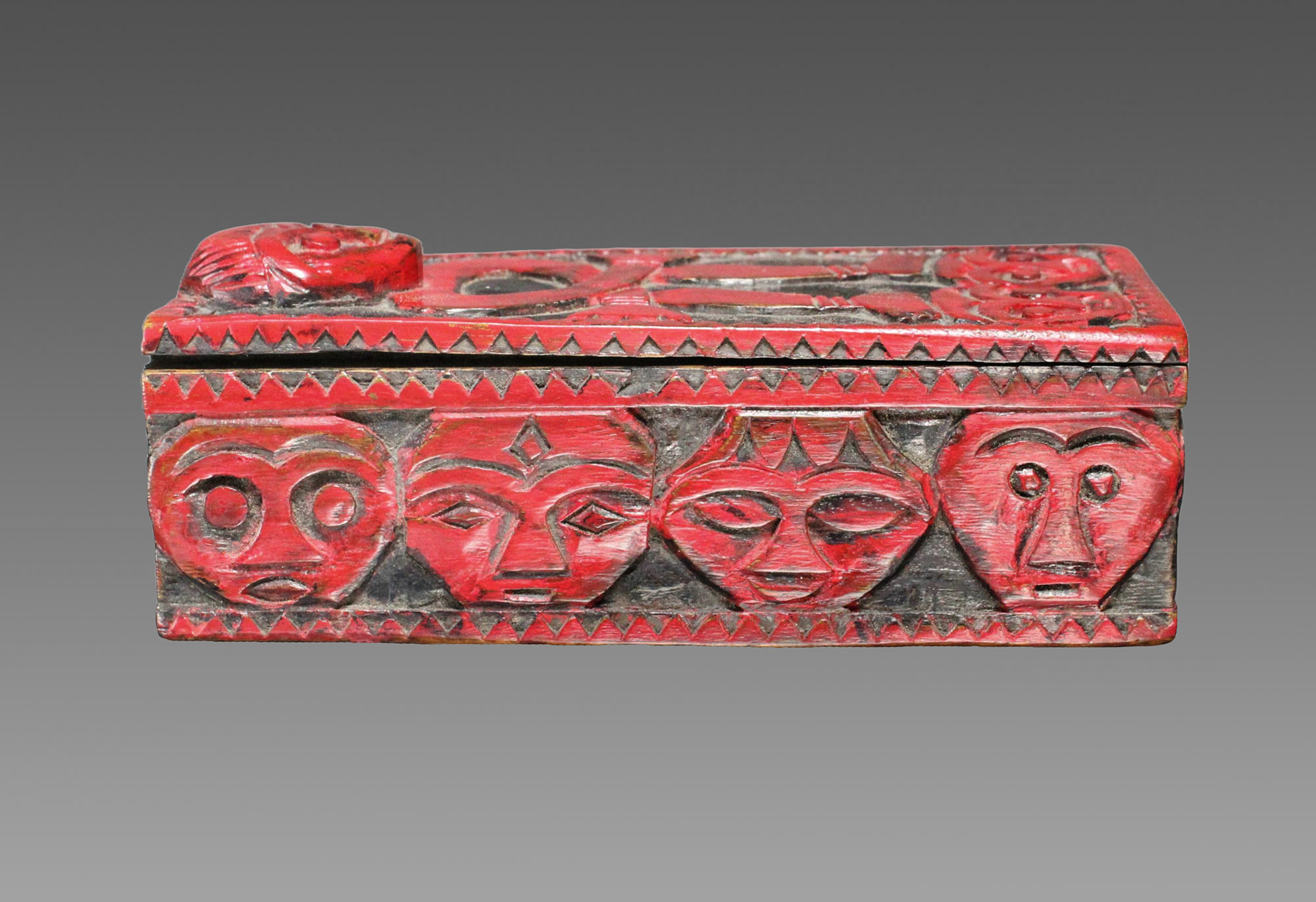 Small box with full figure on the lid (the head is carved in higher relief)