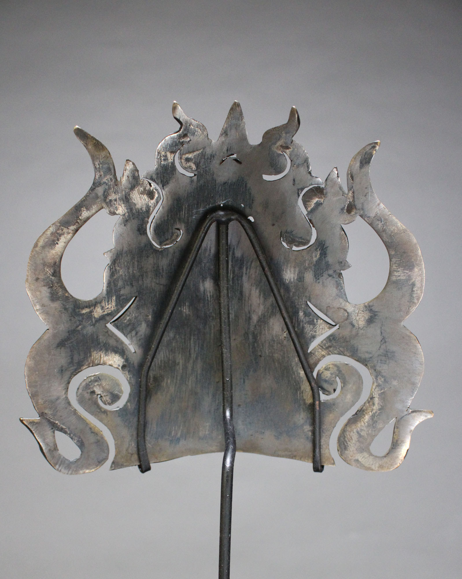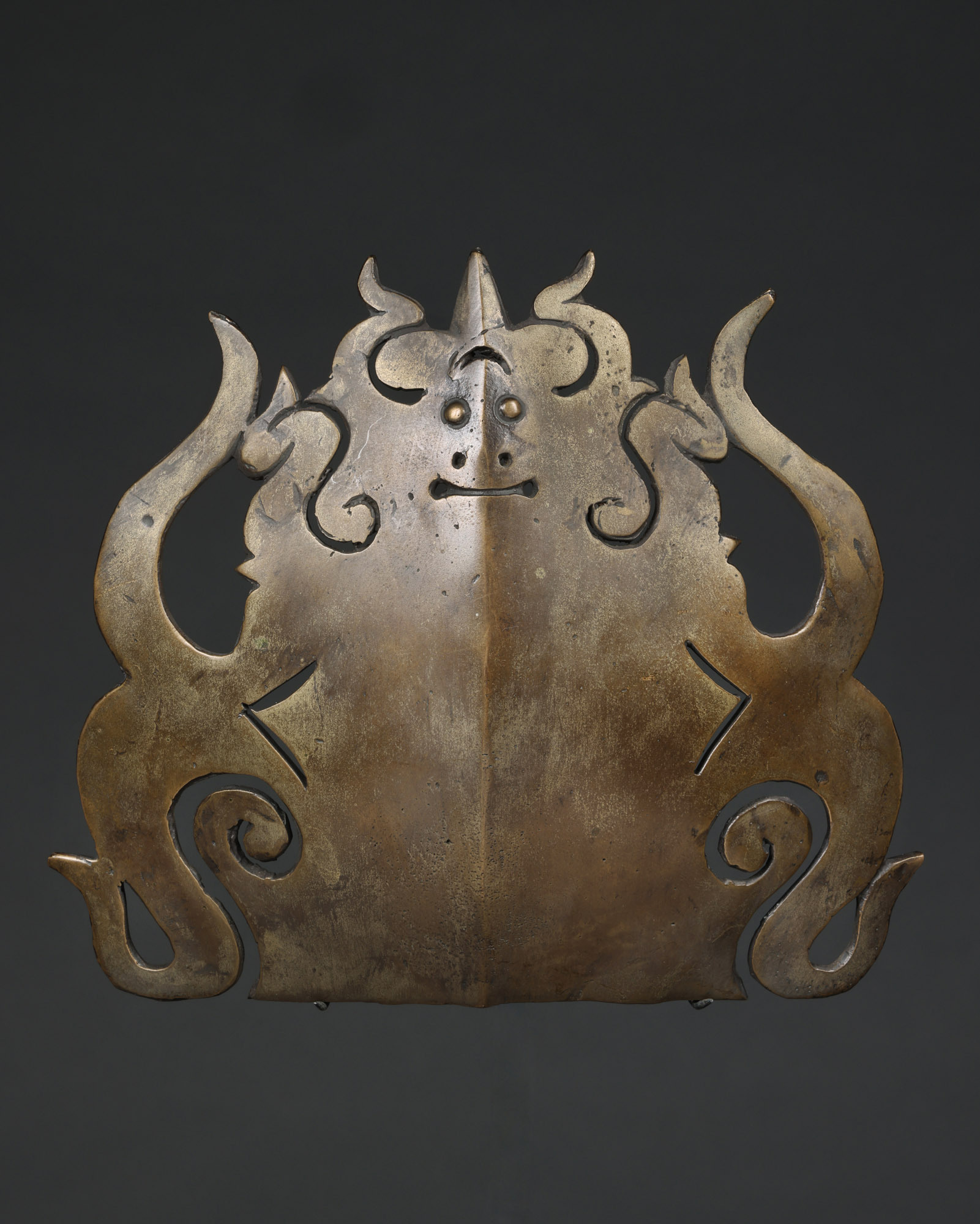 Metal frontal or frontlet with cut-out of guardian spirit, reserved for the helmets of nobles or high status warriors.